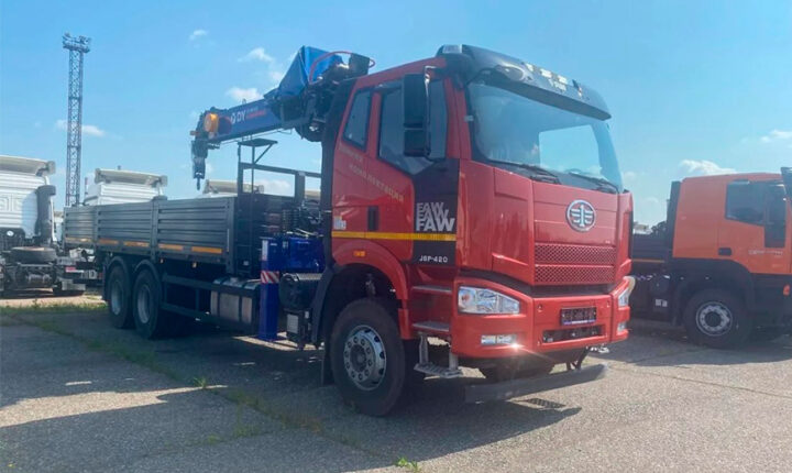Бортовой грузовик FAW J6L 4х2 с КМУ Kanglir KS1256 2024 г