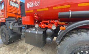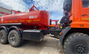 Автоцистерна КАМАЗ 5350 предназначена для перевозки жидкостей: от воды до топлива. Грузоподъёмность цистерны — до 15000 кг. Двигатель мощностью 277 л.с. использует в работе дизель. Колёсная формула 6х6 придаёт цистерне устойчивость на различных покрытиях.