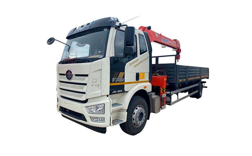 Бортовой грузовик FAW J6L 4х2 с КМУ Kanglir KS1256 2024 г