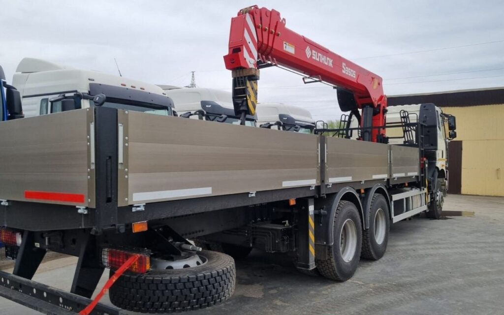 Бортовой FAW J6P с КМУ Sunhunk S3505 — мощь, надёжность и независимость от погрузочной техники.