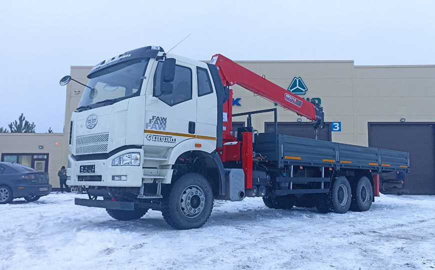 Бортовой грузовик FAW J6L 4х2 с КМУ Kanglir KS1256 2024 г